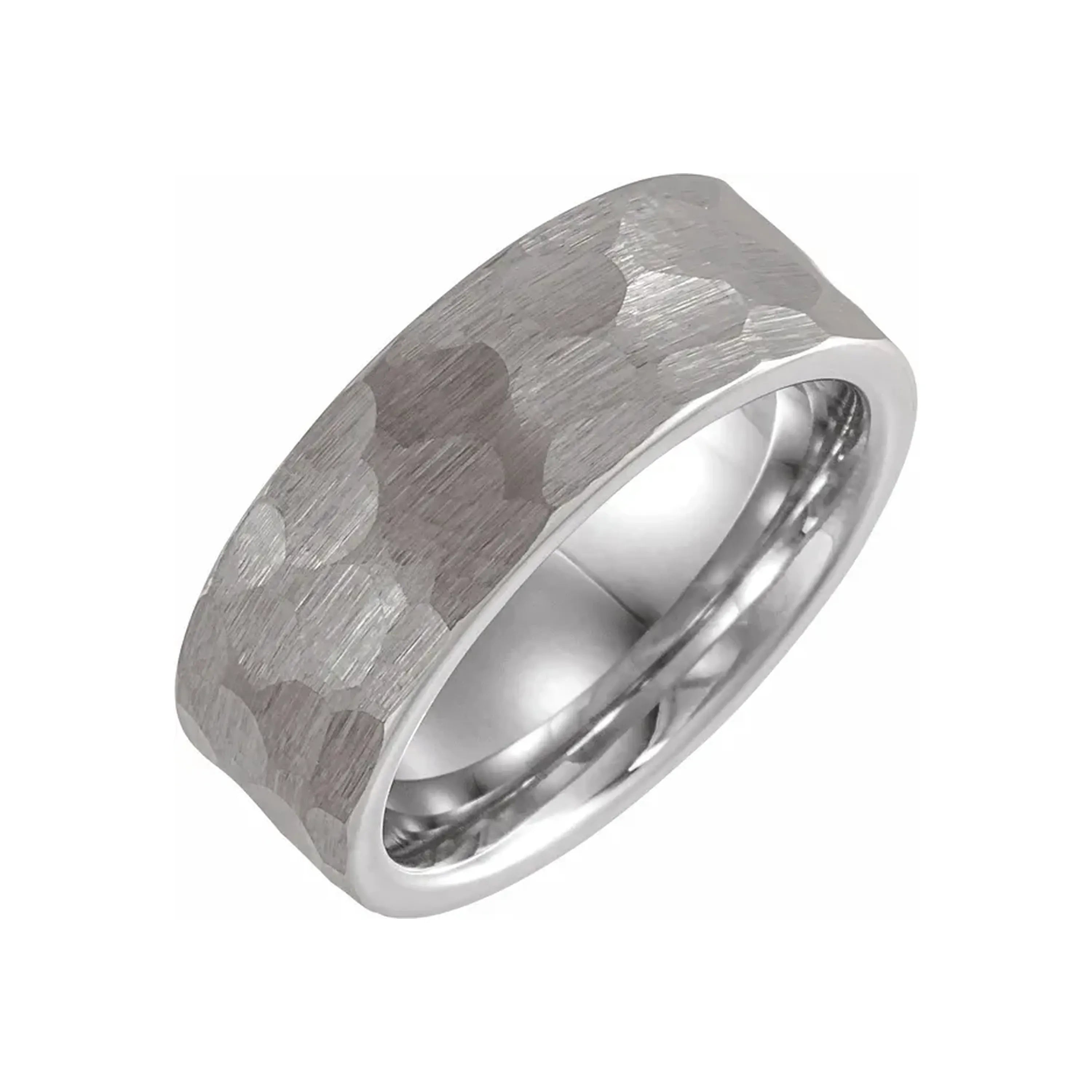 This 18K Rose Gold PVD Tungsten Flat Hammered Band blends strength with elegance, offering a stunning combination of durable tungsten and the warmth of rose gold. The hammered finish adds a textured, contemporary flair, making this ring a standout piece for any occasion. Designed with a comfort-fit interior, it provides a smooth, comfortable wearing experience. With its bold 8mm width (also available in 6 mm), this band makes a striking statement, ideal for those seeking both durability and style.