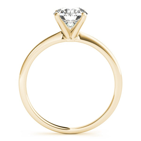 This elegant ring features a classic and timeless design, showcasing a single, brilliant round-cut diamond set in a four-prong setting. The diamond is the centerpiece of the ring, capturing light beautifully and exuding a radiant sparkle. The band is crafted from polished yellow gold, adding a warm and luxurious touch to the overall aesthetic. Its simplicity and sophistication make it an ideal choice for an engagement ring or a special gift, symbolizing elegance and enduring love. The minimalistic design ensures that the focus remains on the stunning diamond, making it a perfect piece for those who appreciate understated beauty.