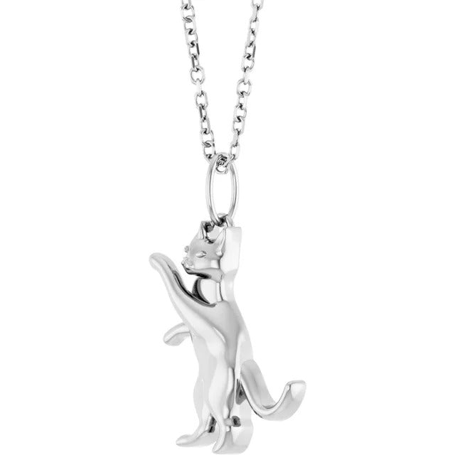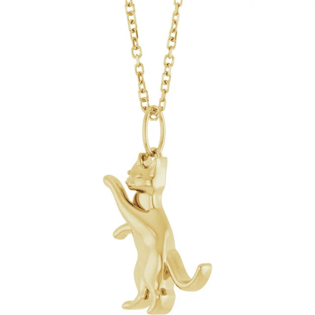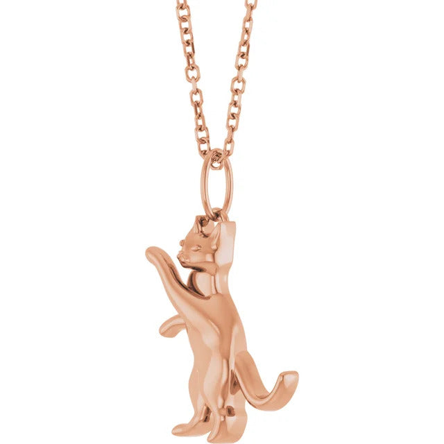 This delightful Cat Pendant Necklace is a playful yet elegant piece, featuring a finely polished cat design. The sleek lines and polished finish bring out the charm of this iconic motif, making it an ideal accessory for animal lovers or anyone looking to add a whimsical touch to their jewelry collection. Suspended on a 16-18" cable chain, this necklace is perfect for everyday wear or as a unique gift for a loved one.