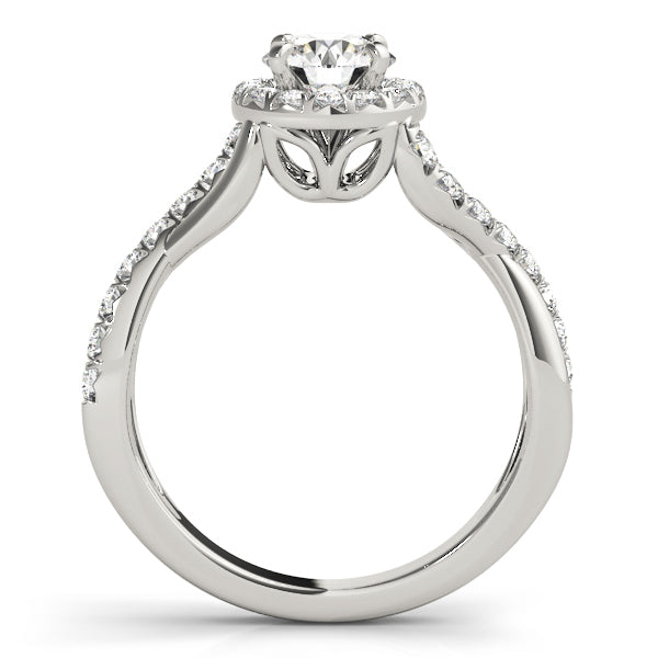 This exquisite ring features a stunning design that showcases a large central diamond, which is the focal point of the piece. Surrounding the central diamond is a halo of smaller diamonds, enhancing its brilliance and adding a touch of elegance. The band of the ring is uniquely designed with a split shank, each side adorned with a row of sparkling diamonds that continue the luxurious theme. The combination of the central diamond, the halo, and the diamond-encrusted band creates a dazzling effect, making this ring a perfect symbol of sophistication and style. The overall craftsmanship and attention to detail highlight the ring's beauty and make it a truly remarkable piece of jewelry.
