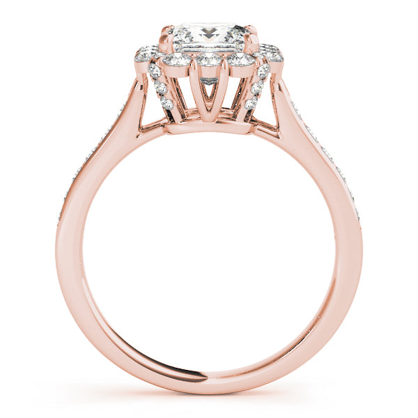 This exquisite ring features a stunning design centered around a large, square-cut diamond that serves as the focal point. Surrounding the central diamond is a halo of 16 smaller round diamonds, enhancing its brilliance and adding a touch of elegance. The band of the ring is adorned with an additional 10 smaller diamonds on each side, creating a continuous sparkle that catches the light beautifully. Crafted in a sleek and polished metal, the ring combines classic sophistication with modern flair, making it a perfect choice for those seeking a timeless yet contemporary piece of jewelry.