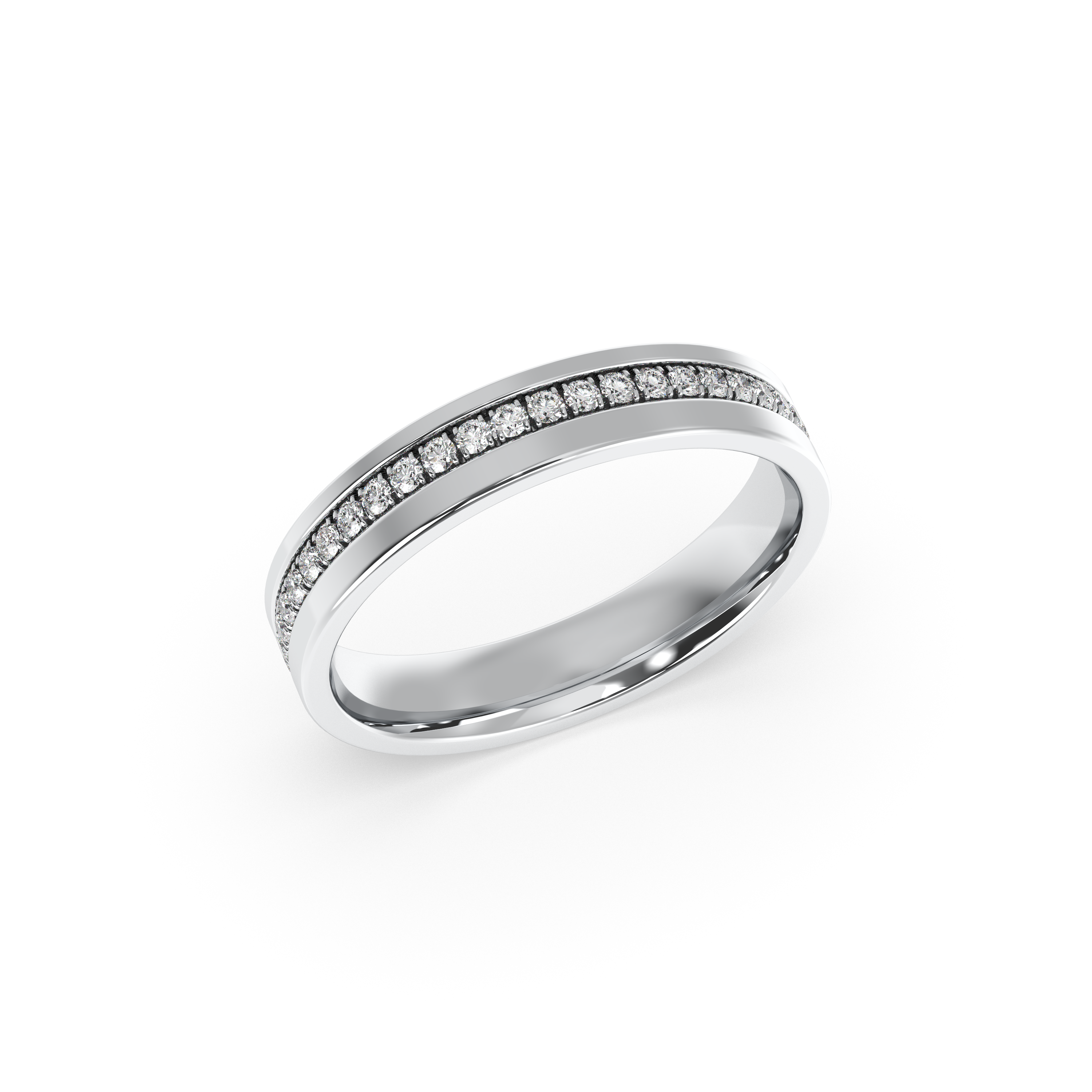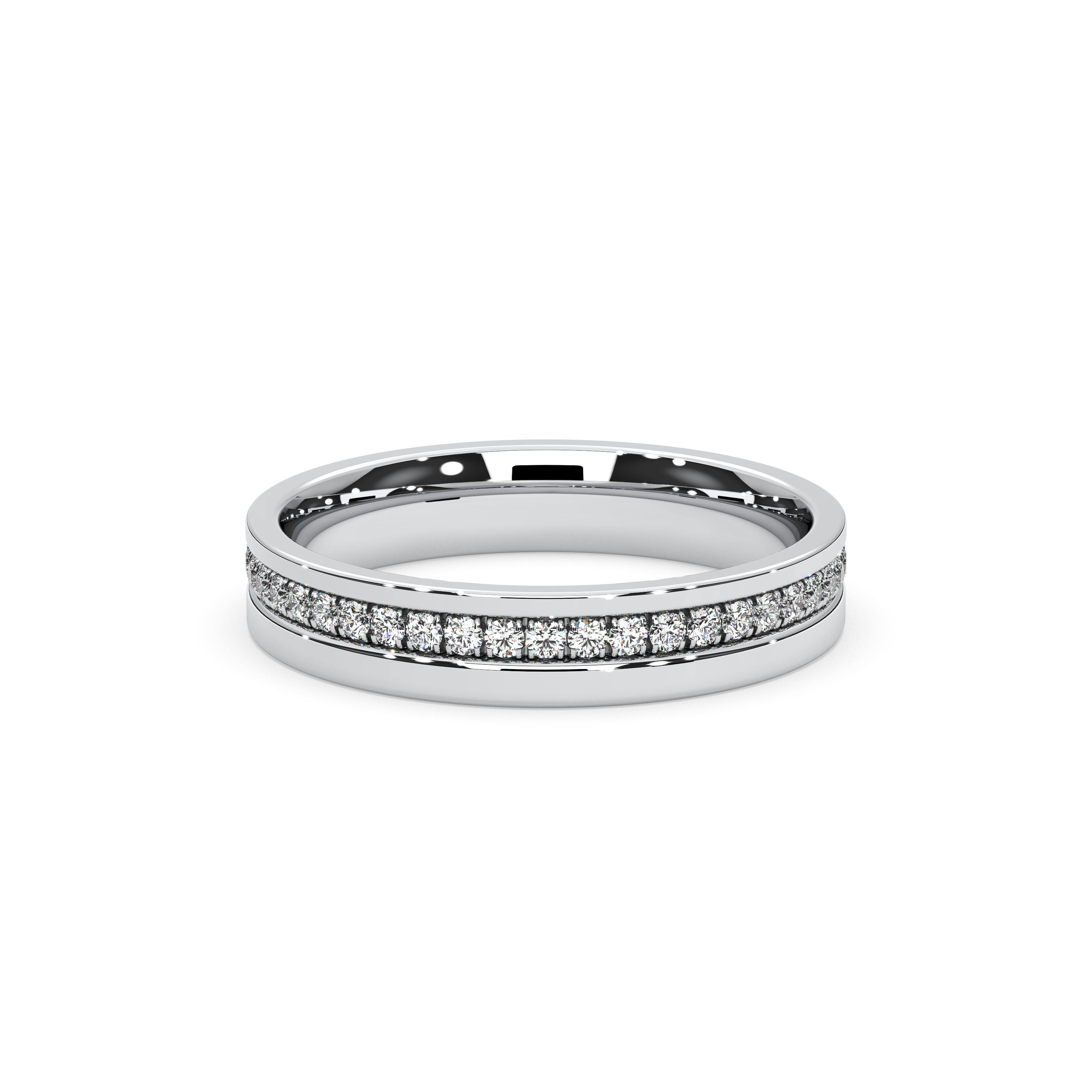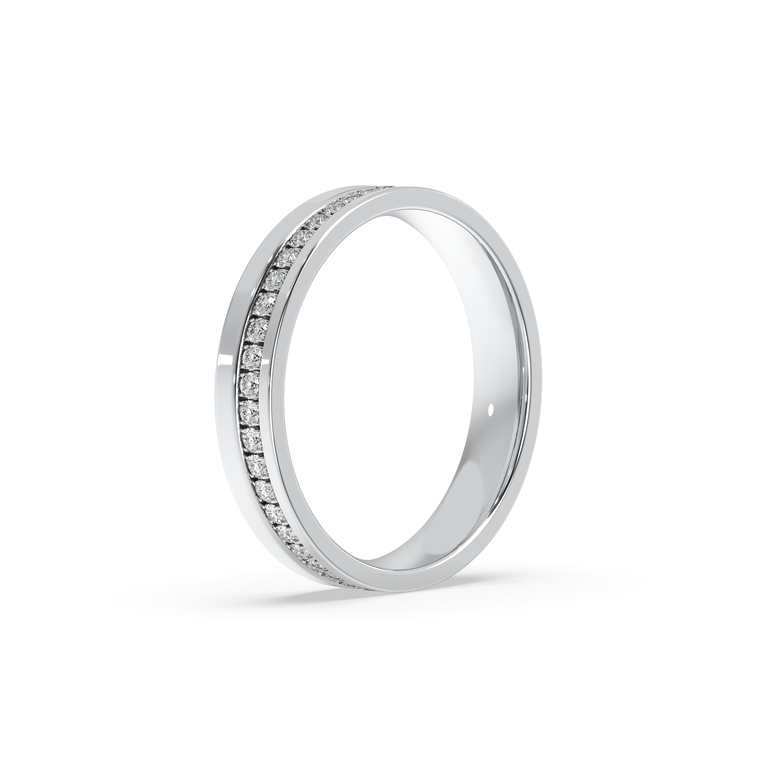 This refined wedding band features a contemporary channel-set design, with a continuous line of round brilliant diamonds elegantly set within a polished band. The sleek profile and timeless style create a luxurious look that is both understated and sophisticated. Perfect for marking a special commitment or worn as a distinctive statement piece, this band offers enduring appeal for the modern man.