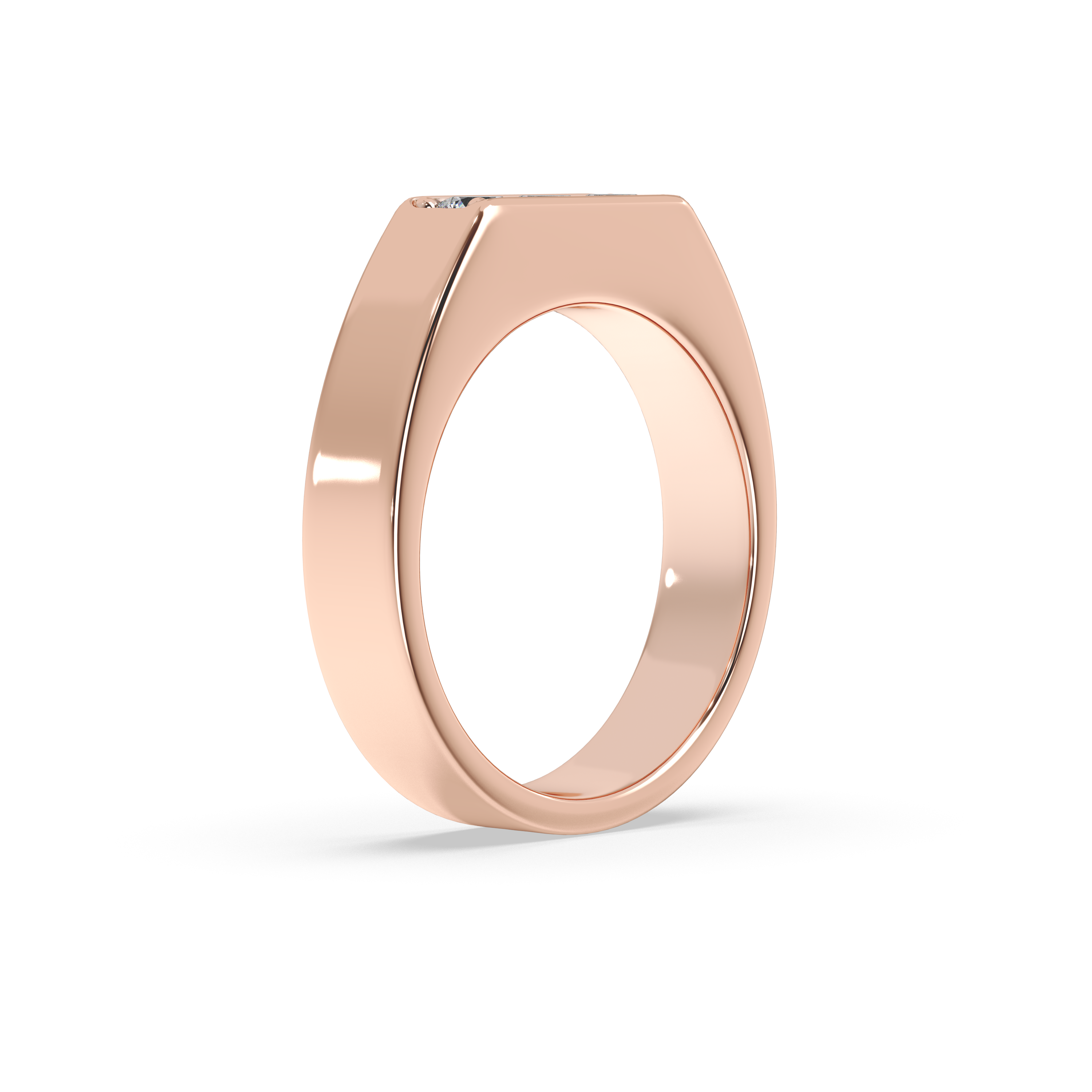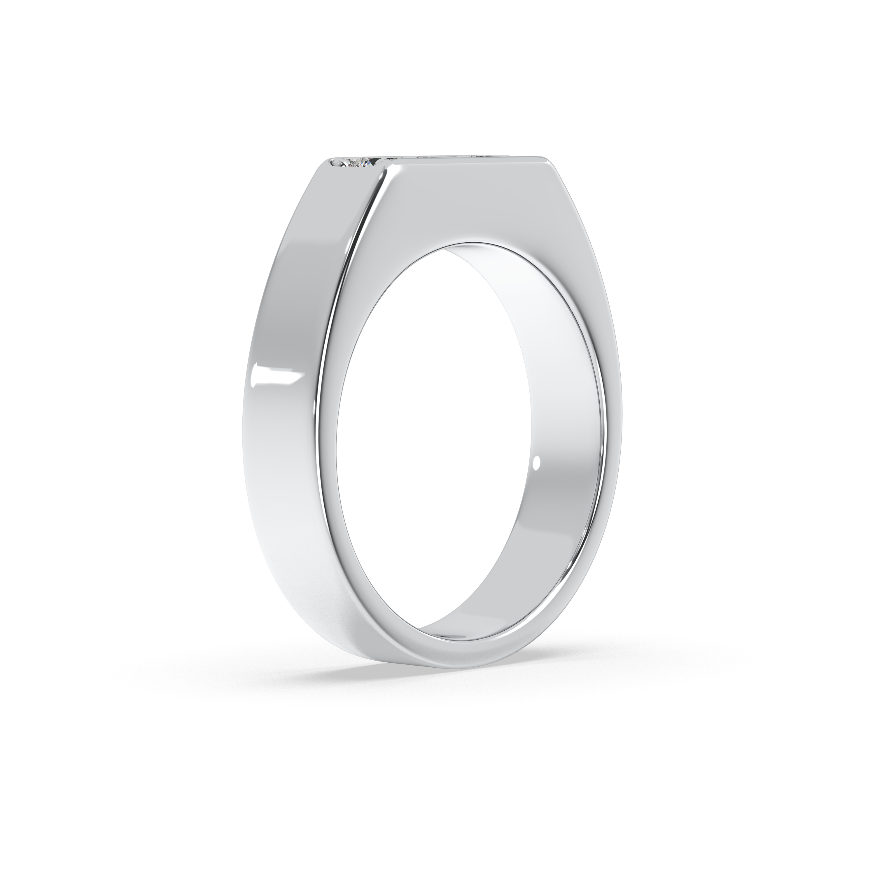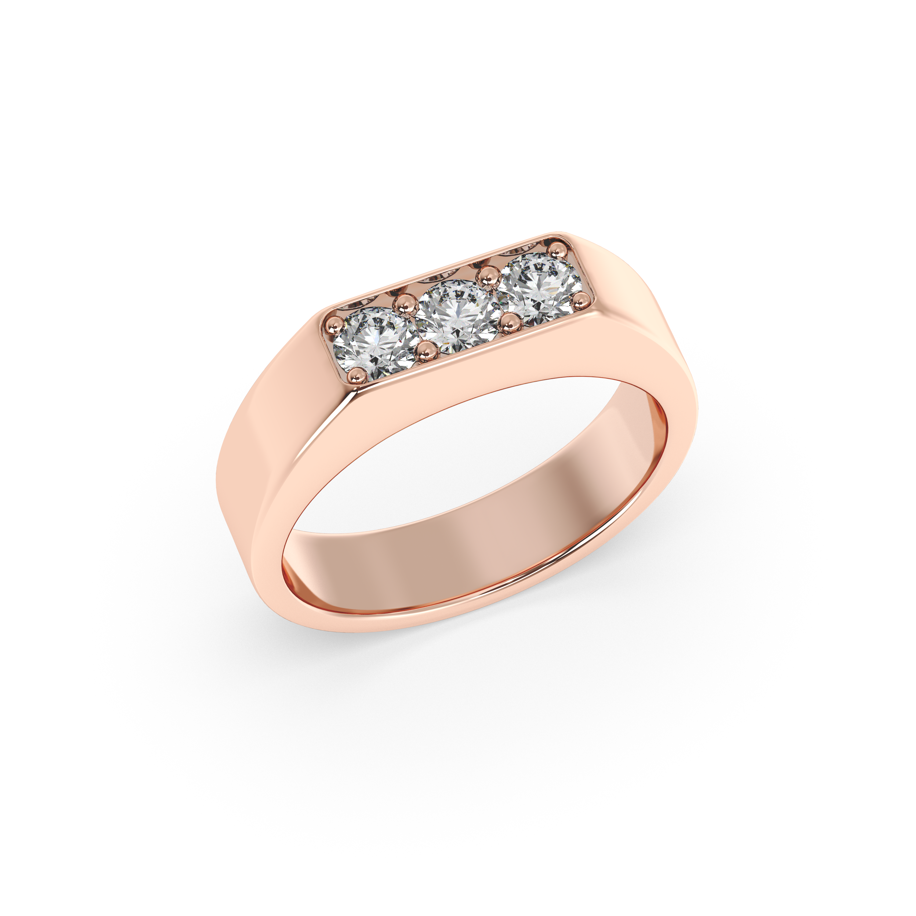 This bold and modern men’s band is distinguished by its sleek, substantial profile and a striking trio of round brilliant diamonds set flush across the top. The clean lines and strong presence offer a contemporary twist on classic elegance, making this ring a sophisticated choice for those who appreciate refined simplicity with a touch of brilliance. Perfect as a wedding band or an everyday statement, it balances luxury and understatement in perfect harmony.