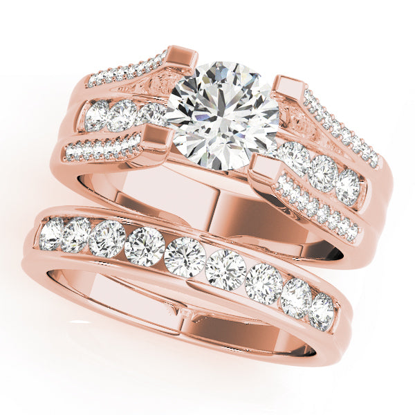 The ring is an exquisite piece of jewelry crafted from yellow gold, featuring a stunning design that combines elegance and sophistication. At its center, a large, brilliant-cut diamond serves as the focal point, capturing attention with its dazzling sparkle. Flanking the central diamond are two rows of smaller round diamonds, each meticulously set into the band to enhance the ring's overall brilliance. The band itself is split into two sections, with each section adorned with a line of tiny diamonds that add a touch of intricate detail and luxury. The combination of the central diamond and the surrounding smaller diamonds creates a harmonious and eye-catching design, making this ring a perfect symbol of elegance and timeless beauty.