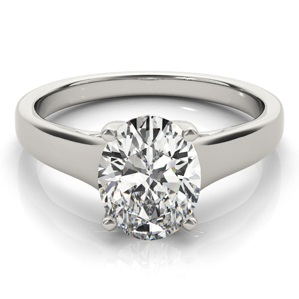 The ring features a classic and elegant design, showcasing a single, large oval-cut diamond as its centerpiece. The diamond is securely held in place by four prongs, allowing maximum light to pass through and enhance its brilliance. The band is crafted from polished yellow gold, providing a warm and timeless contrast to the sparkling diamond. Its smooth and slightly tapered design ensures a comfortable fit, making it a perfect choice for an engagement ring or a statement piece for special occasions. The simplicity and sophistication of this ring highlight the beauty of the diamond, making it a truly stunning piece of jewelry.